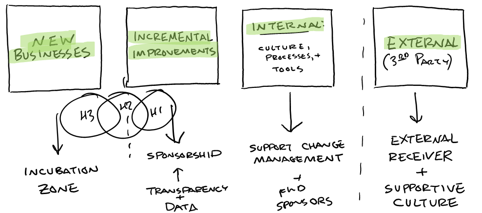 However, taking the longer view toward incubation and growth is often warranted. I encourage teams first to explore their new business potential and then only transition to the incremental improvement path when that is exhausted.